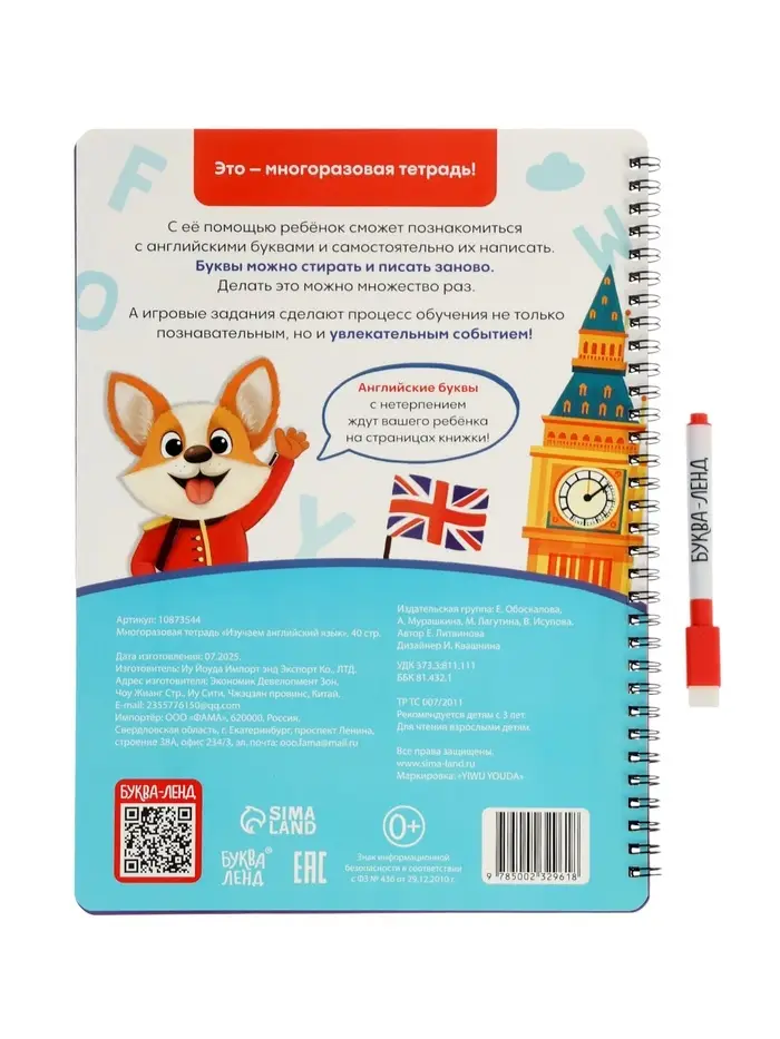 Многоразовая тетрадь "Изучаем английский язык", 40 стр