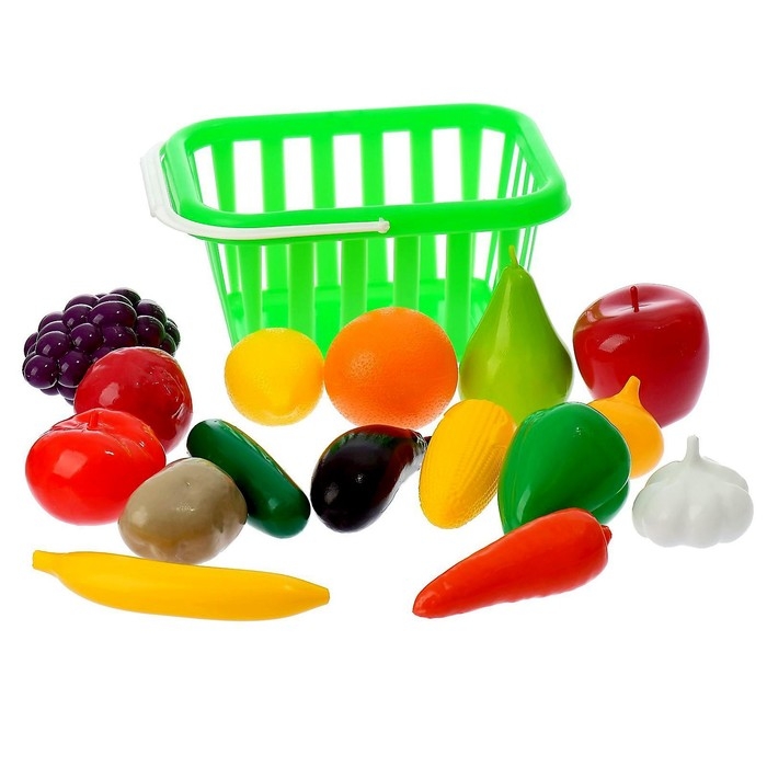 Набор «Фрукты и овощи» в корзине, 17 предметов, цвета МИКС