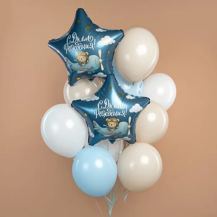 Воздушные шары фольгированные 19" «С днем рождения, пилот», 5 шт.