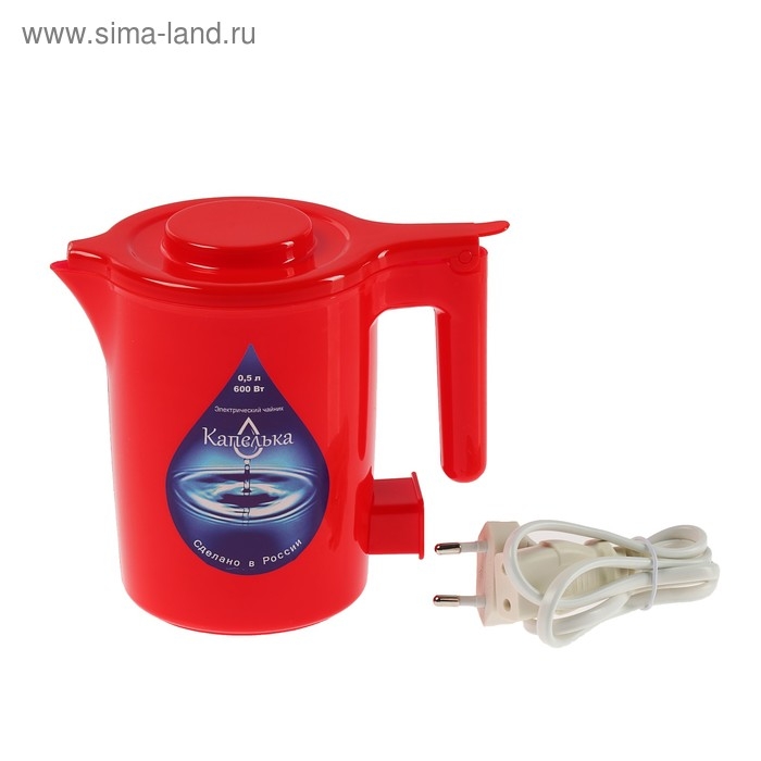 Чайник электрический "Капелька", пластик, 0.5 л, 600 Вт, красный