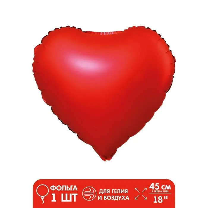 Шар фольгированный 18" "Сердце", с клапаном, матовый, цвет красный