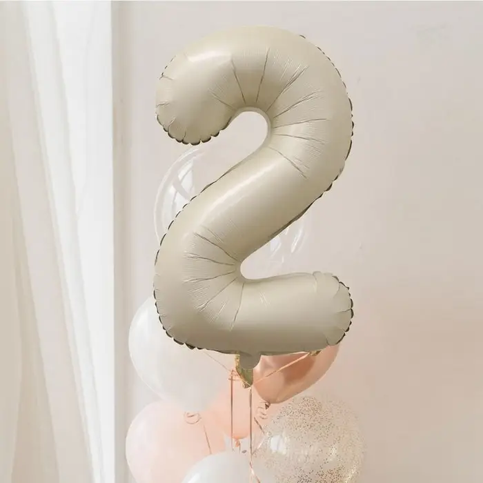 Шар фольгированный 40" Цифра 2, цвет «Взбитые сливки»