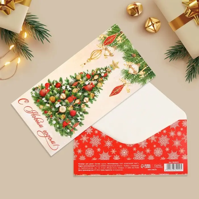 Конверт для денег «С Новым годом!», ёлка, 16.5 х 8 см