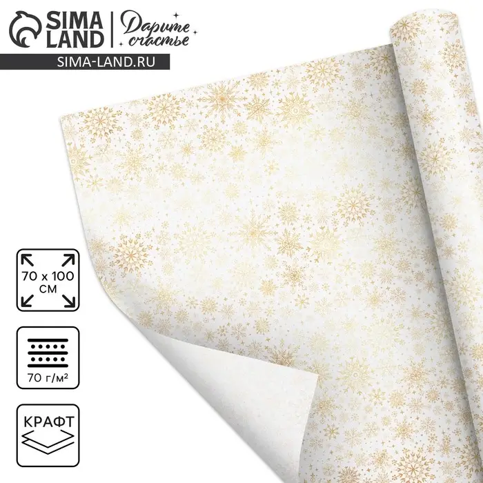 Упаковочная бумага на новый год крафтовая «Белое золото», 70×100 см