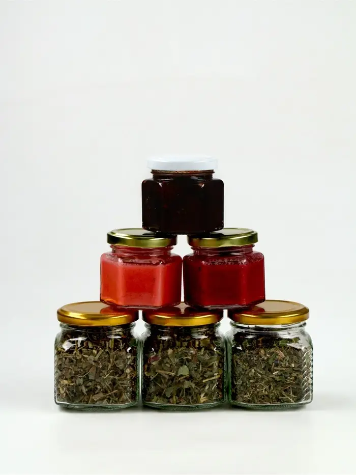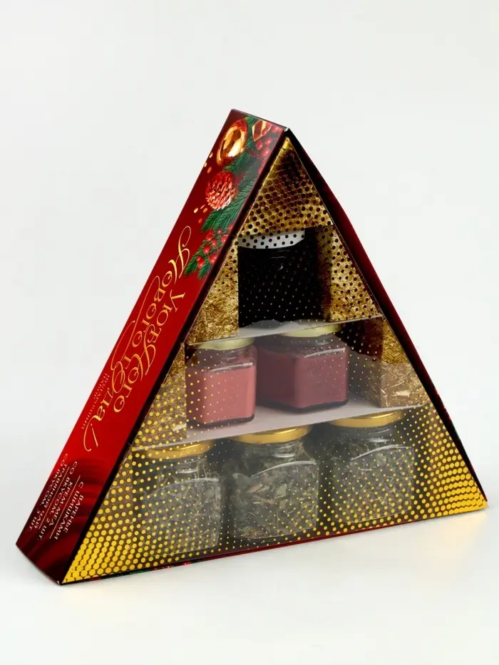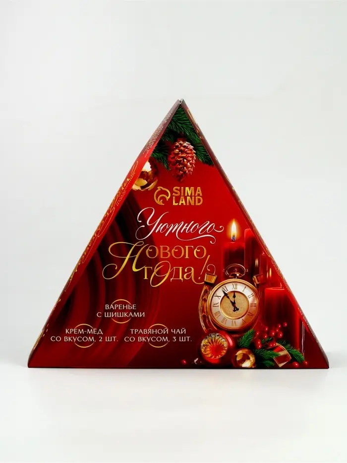 Подарочный набор новогодний «Уютного года» варенье с шишками, крем-мед 2 шт, чай в банке 3 шт 1087