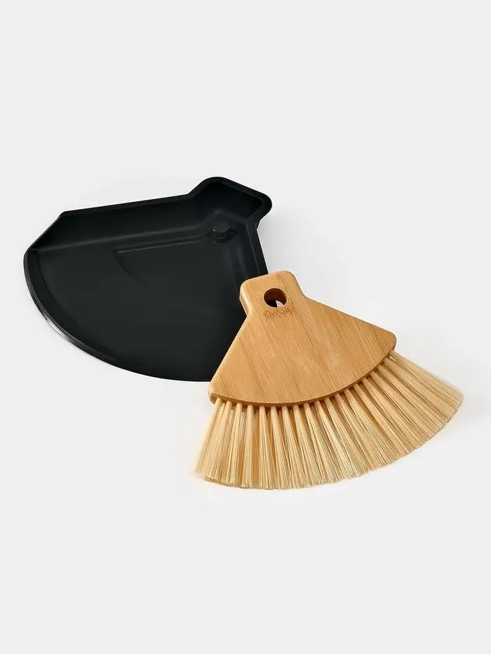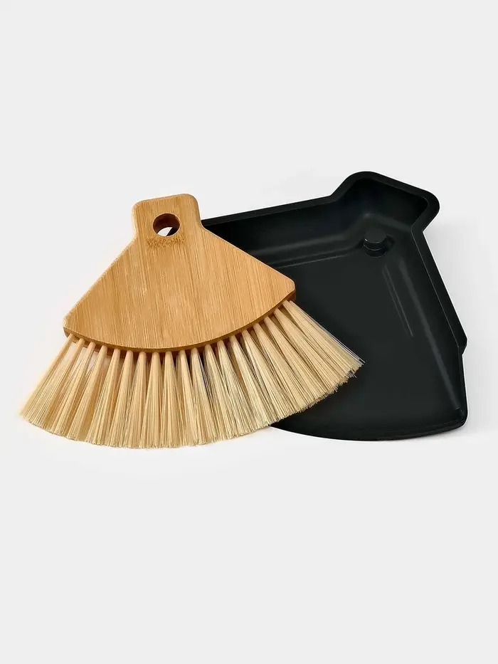 Щетка с совком "Meli", бамбуковая ручка, цвет черный 20х19 см