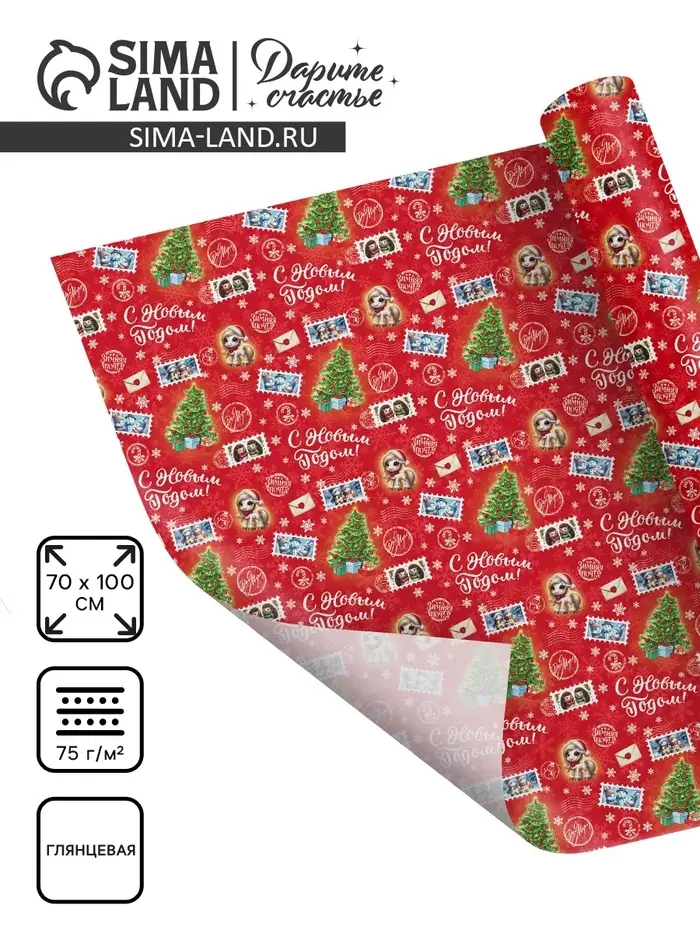 Бумага упаковочная глянцевая «Новогодняя почта», 70×100 см