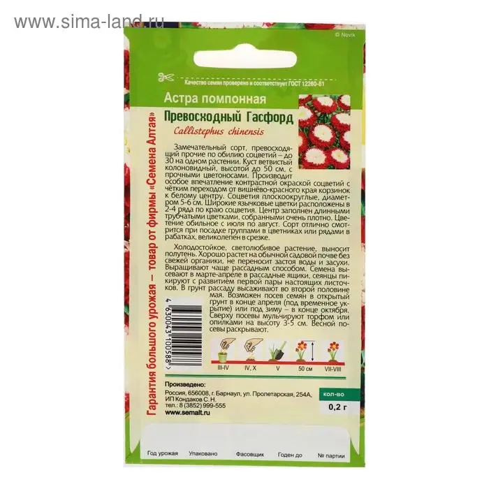Семена цветов Астра "Седая Дама", красная, карликовая, Сем. Алт, ц/п, 0,1 г