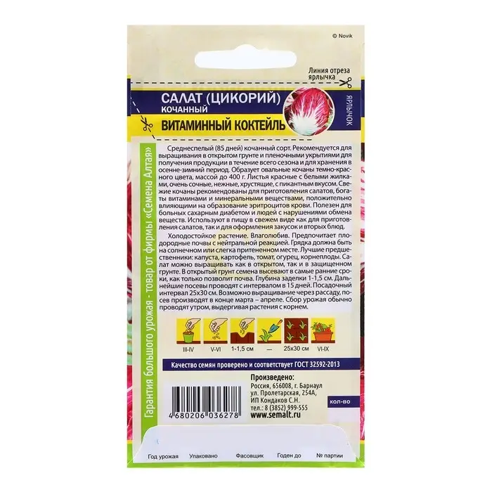 Семена Салат "Цикорий Витаминный Коктейль", ц/п, 0,5 гр.