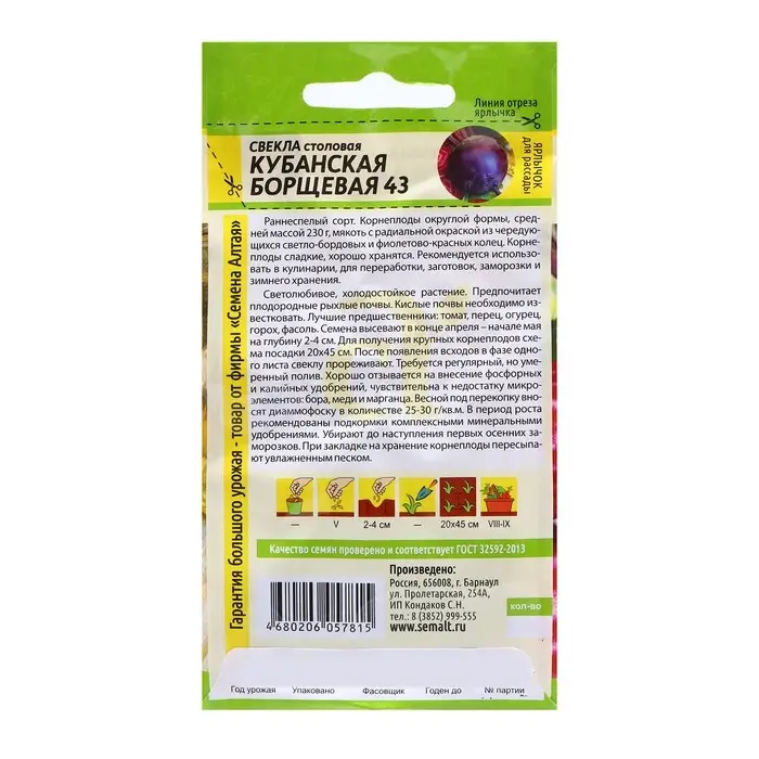 Семена Свекла "Кубанская Борщевая 43", ц/п, 2 гр.