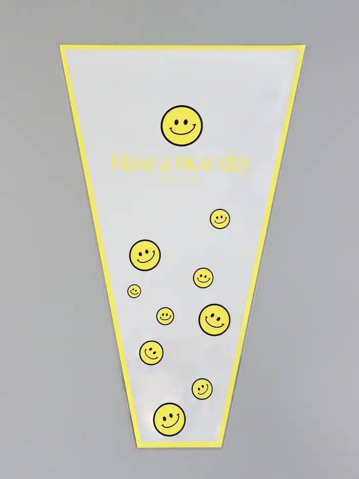 Стильная упаковка для цветочных композиций! Белый конус для цветов с веселыми смайлами – это универсальное решение для оформления букетов. Его лаконичный дизайн с игривыми элементами подойдет для любого праздничного повода.
