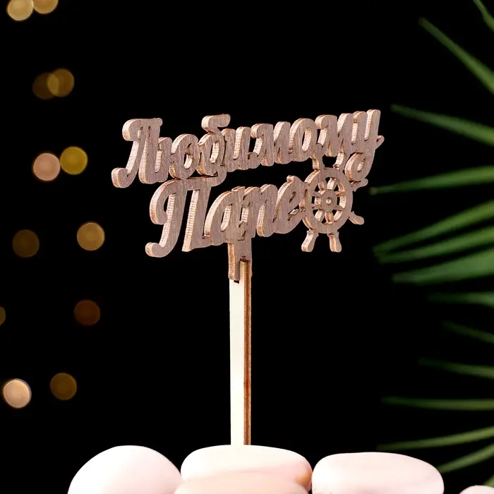 Топпер деревянный "Любимому папе" ольха 13х6 см