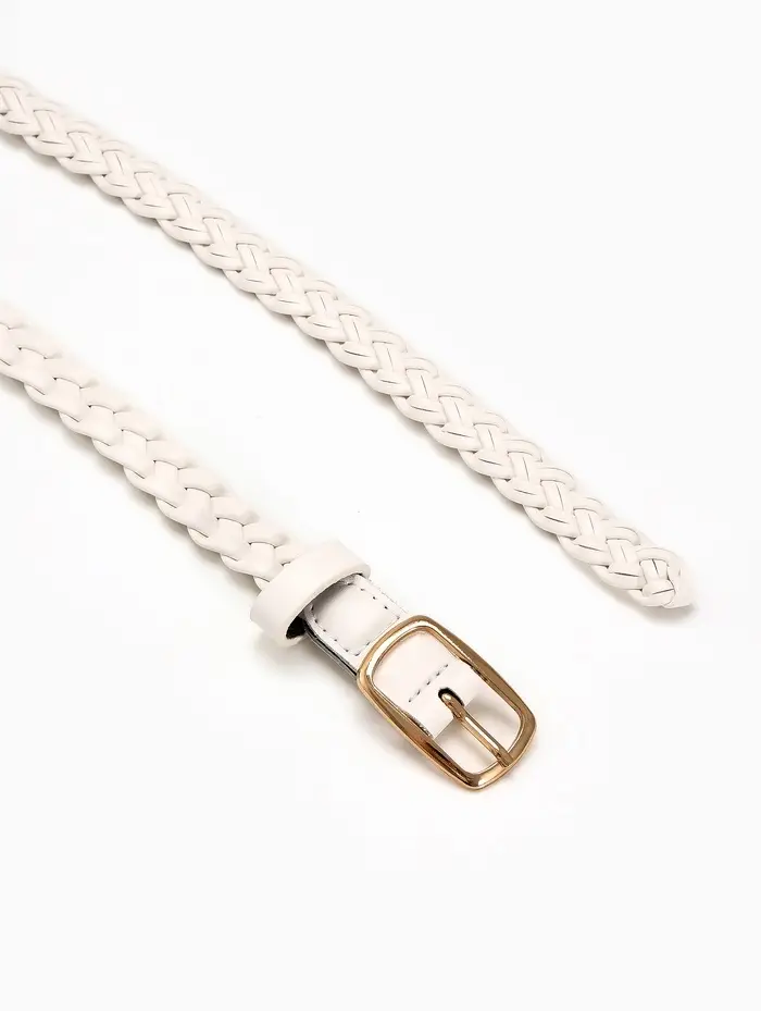Ремень жен 03-01-01-01, Июнь2501, 1,8*0,3*110 см, без винта, пряж золото, 1 прокол, белый