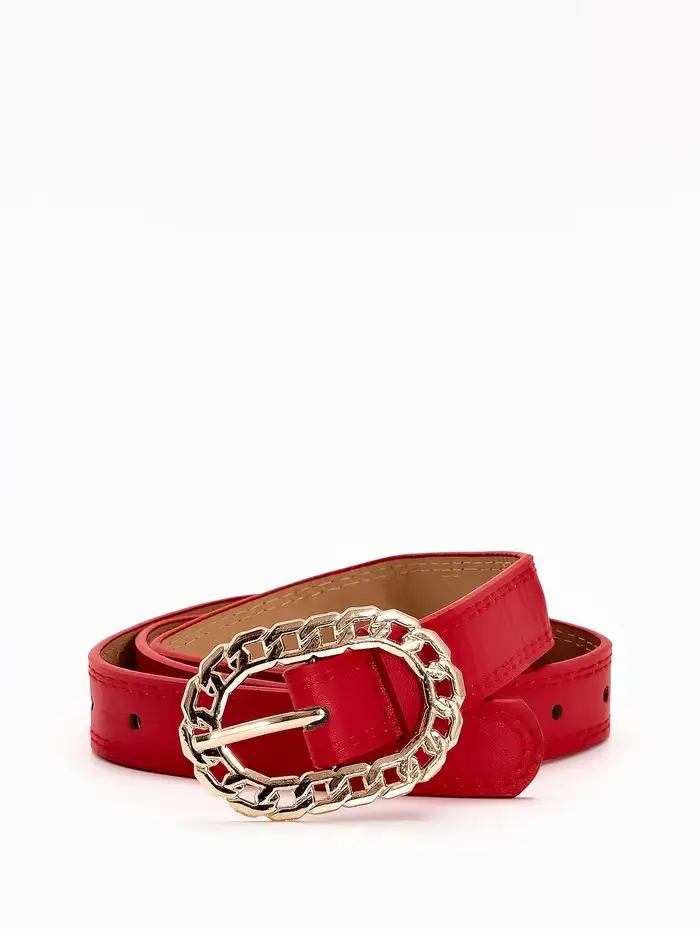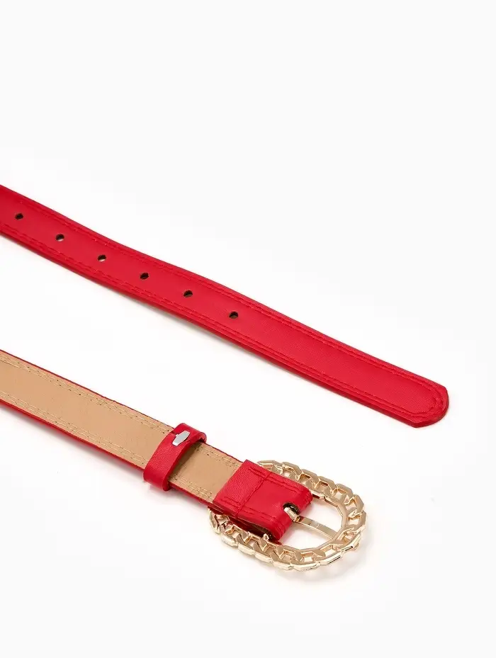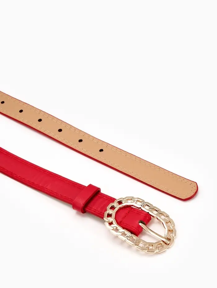 Ремень жен 04-01-01-01, Июнь2503, 2,5*0,3*110 см, без винта, пряж золото, 1 прокол, красный 109031