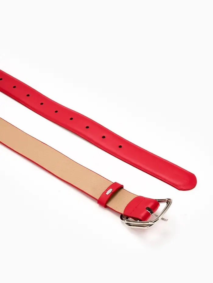 Ремень жен 06-01-02-01, Июнь2504, 3,2*0,3*110 см, без винта, пряж металл, 1 прокол, красный 109031
