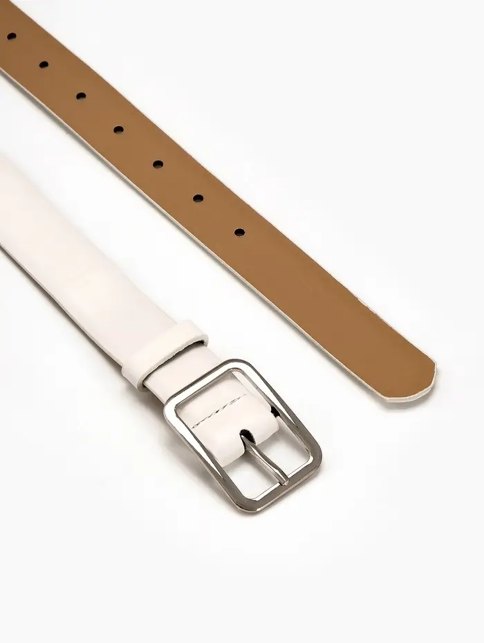 Ремень жен 05-01-02-01, Июнь2505, 3*0,3*110 см, без винта, пряж мат металл, 1 прокол, белый 109031