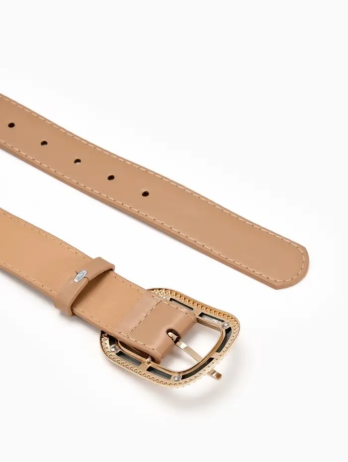 Ремень жен 05-01-07-01, Июнь2507, 3*0,3*110 см, без винта, пряж золото+пласт, 1 прокол, беж 109031