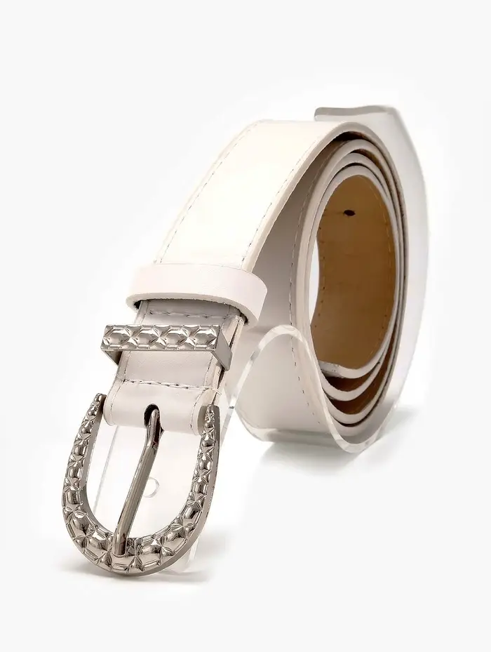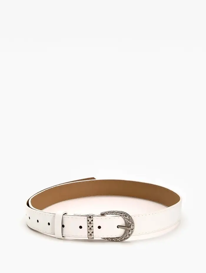 Ремень жен 05-01-02-01, Июнь2509, 3*0,3*110 см, без винта, пряж металл, 1 прокол, белый