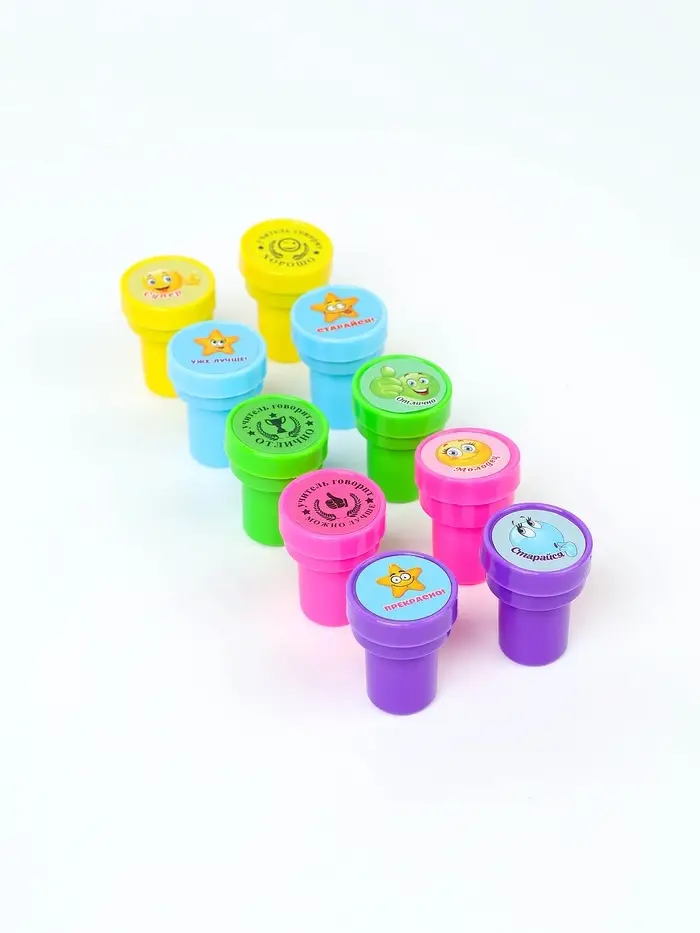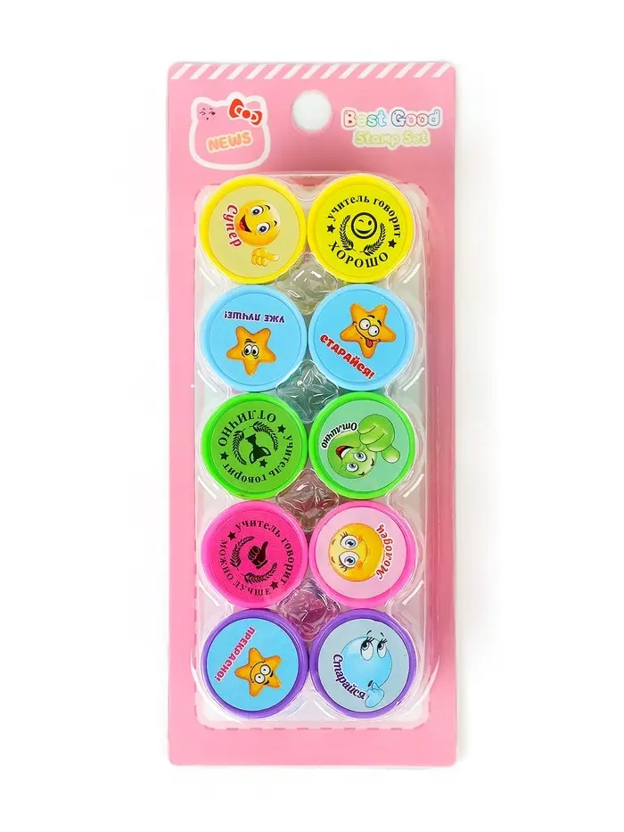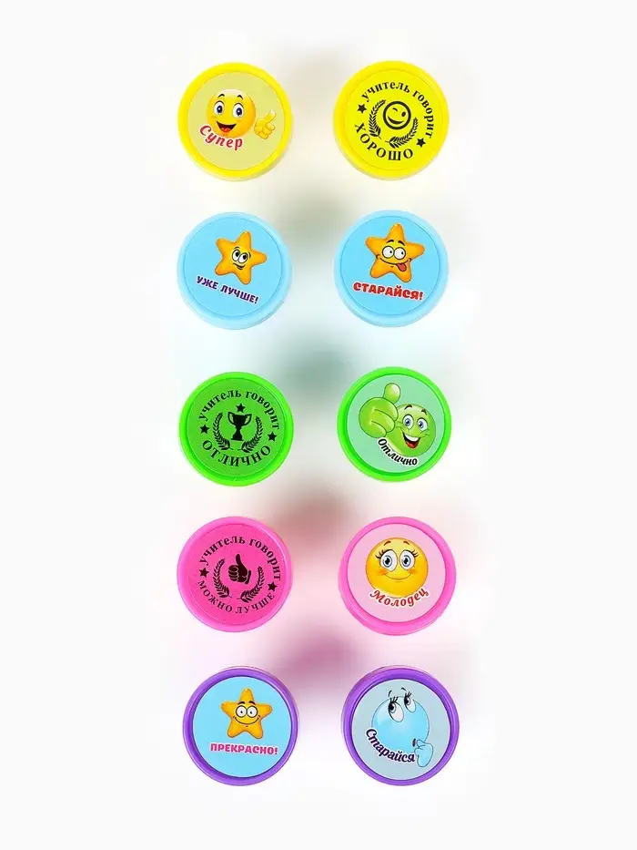 Оценочные печати "Смайлы" набор 10 шт, вид МИКС