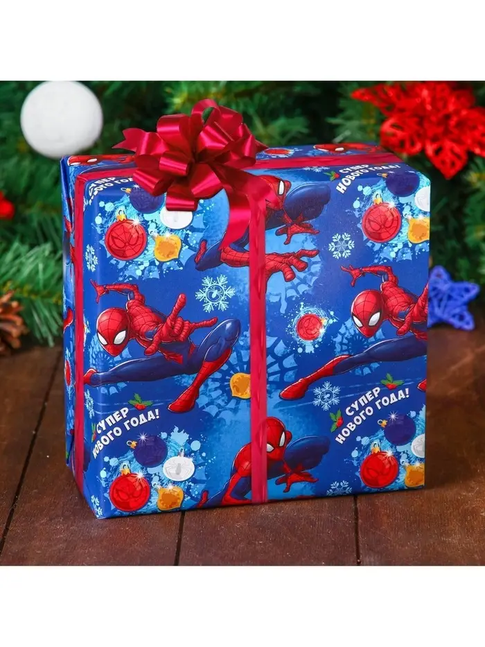 Бумага упаковочная глянцевая «С Новым Годом!», Человек-паук, 70 х 100 см
