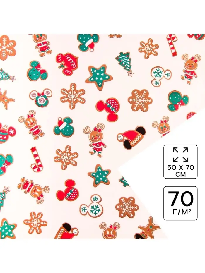 Бумага упаковочная «Новый год» 70 х 50 см, Микки Маус