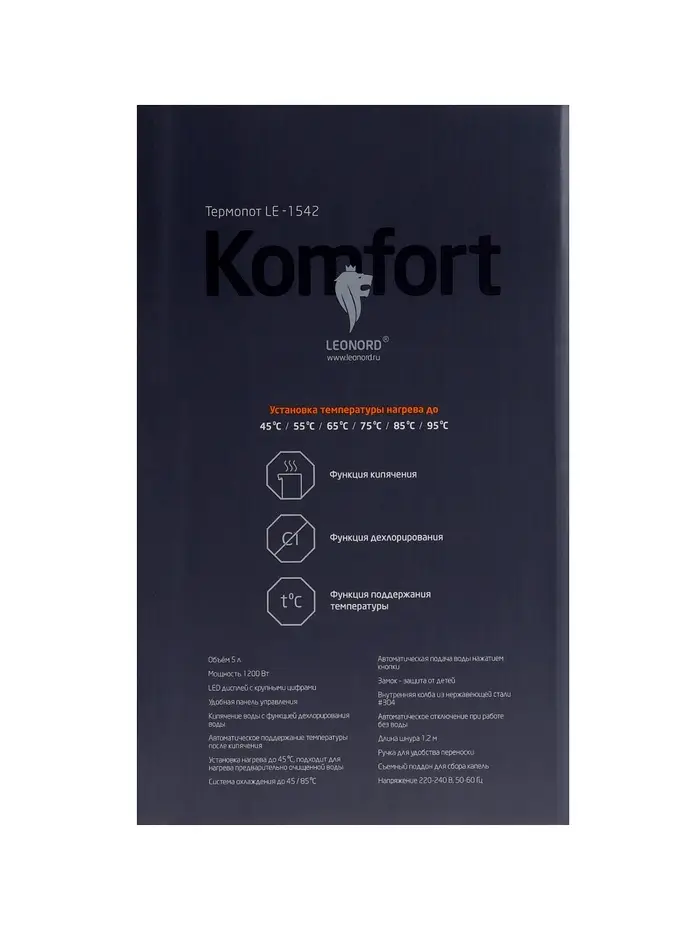 Термопот Leonord LE-1542, 1200 Вт, 5 л, регулировка t, сенсор, 8 режимов, белый