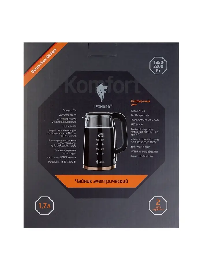 Чайник электрический Leonord LE-1511, 1.7л,дисплей, поддержание температуры 40-100℃,черный
