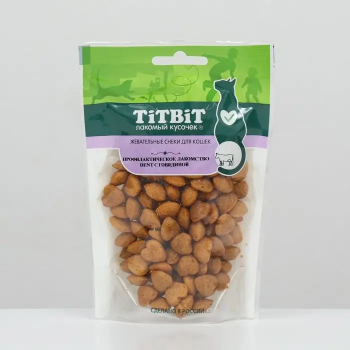 Лакомство TitBit "Dent" для кошек, жевательные снеки, говядина, 40 г