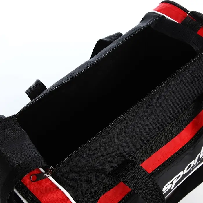 Сумка спортивная на молнии, 3 наружных кармана, длинный ремень, средний размер, цвет чёрный/красный