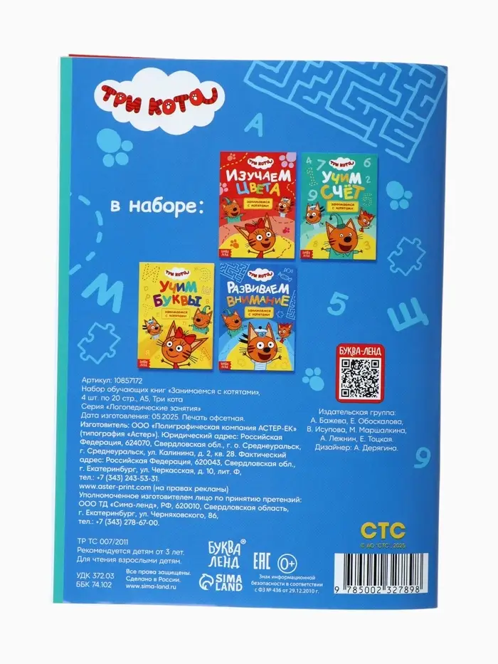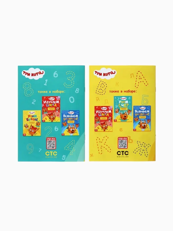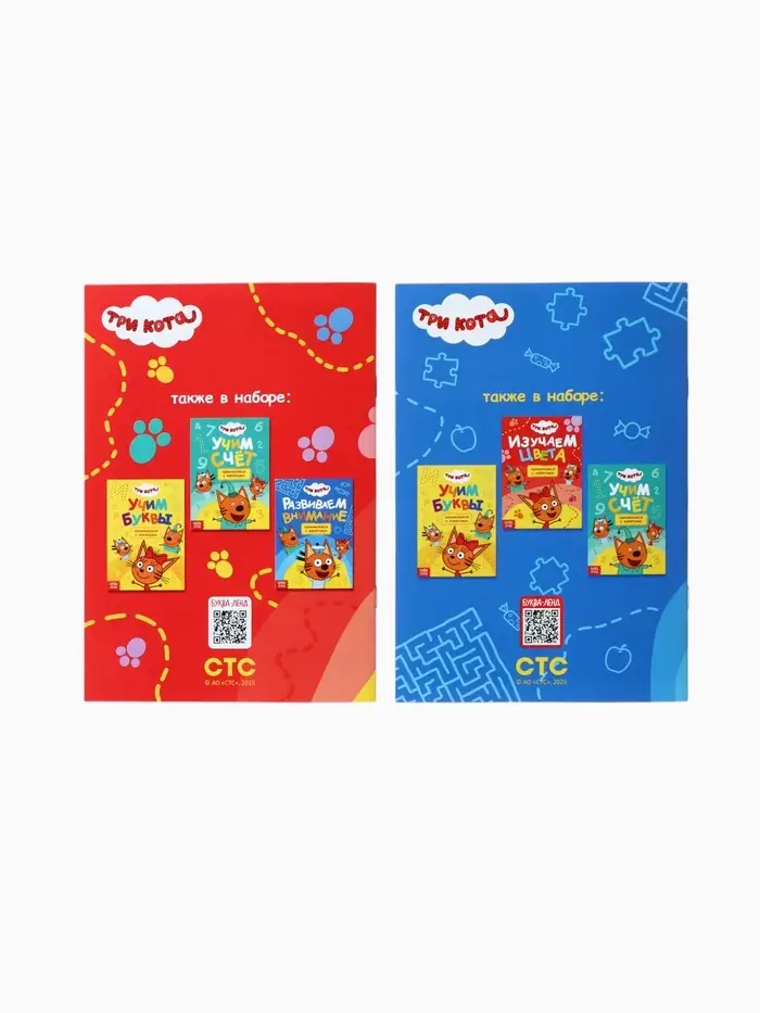 Обучающие книжки «Занимаемся с котятами» — это набор из 4 компактных книг формата А5, созданных по мотивам популярного мультфильма «Три кота». Каждая книга содержит 20 страниц с увлекательными заданиями, которые помогут детям от 3 лет освоить базовые навыки: счёт, цвета, буквы и развитие внимания. Яркие иллюстрации и знакомые персонажи делают обучение интересным и доступным для малышей.