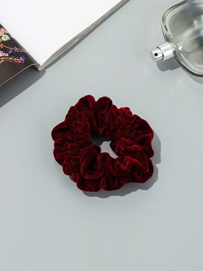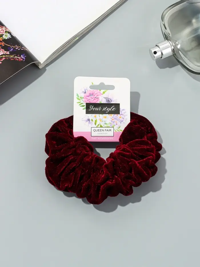 - Бархатистая текстильная поверхность: Материал приятен на ощупь и надежно удерживает волосы, не позволяя резинке соскальзывать. Такая фактура выглядит дорого и отлично сочетается с разными тканями одежды.