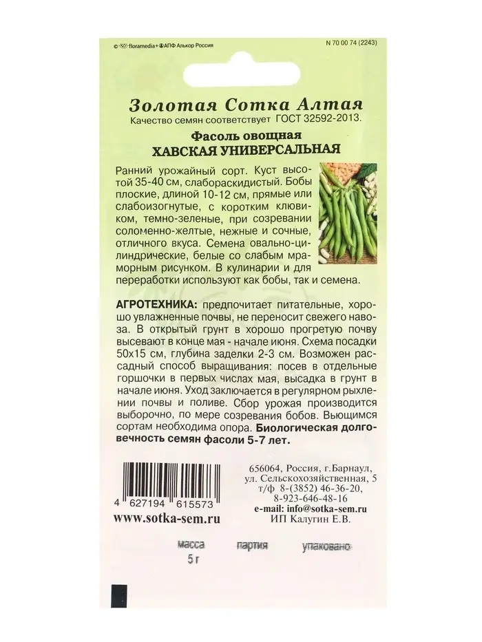 Семена Фасоль Хавская универсальная /Сотка/ 5г/ ранний кустов. зеленая /*400