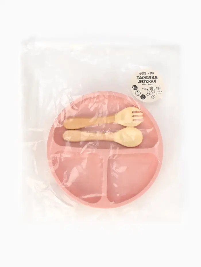 Тарелка детская секционная с ложкой и вилкой, 3 секции, розовый, Mum&Baby