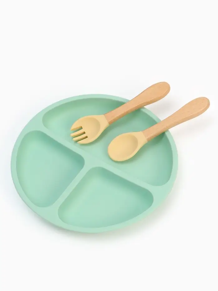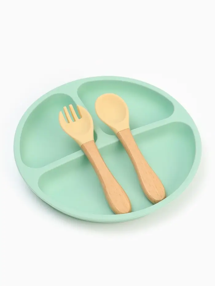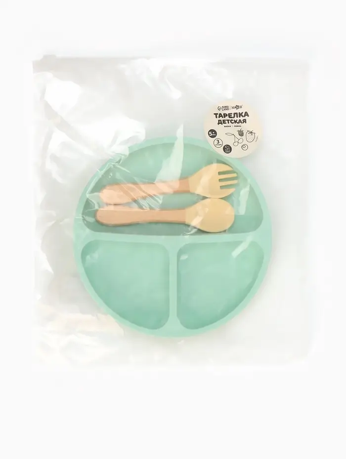 Тарелка детская секционная с ложкой и вилкой, 3 секции, бирюзовый, Mum&Baby