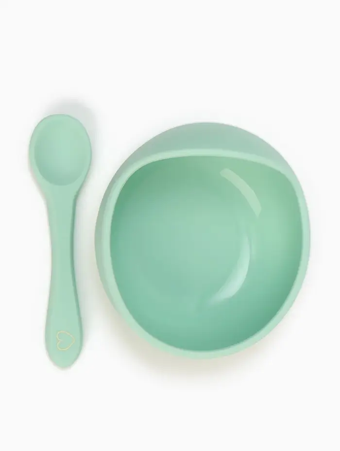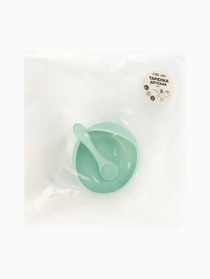 Тарелка детская на присоске и ложка, бирюзовый, Mum&Baby