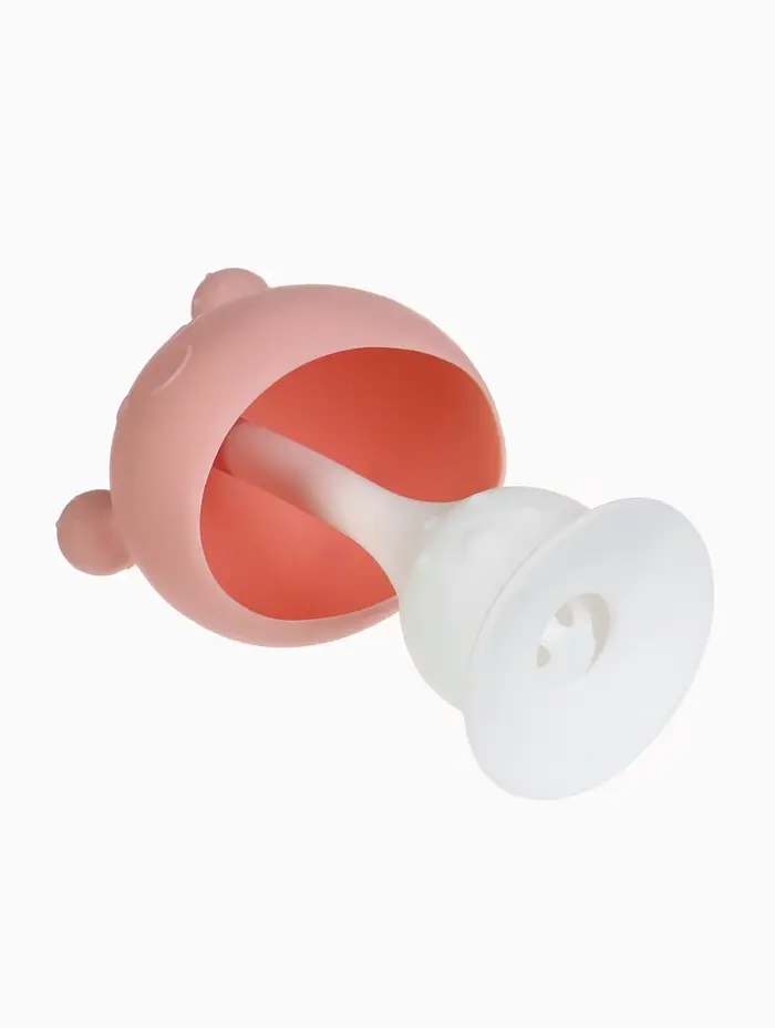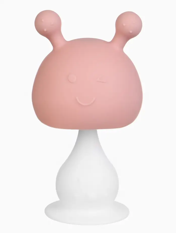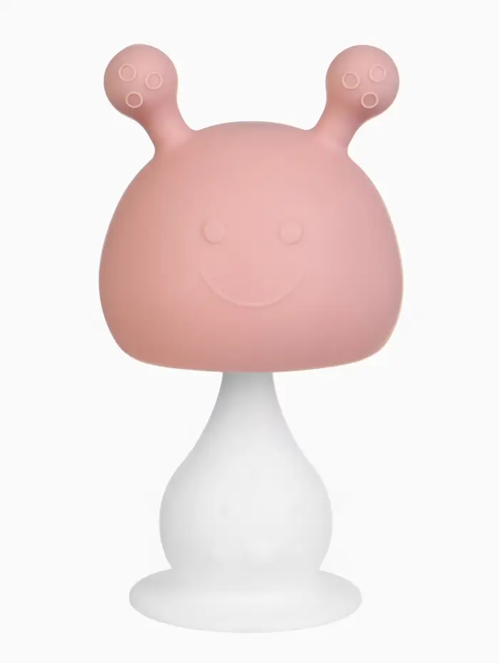 Прорезыватель силиконовый для зубов с погремушкой 3 в 1 M&B «Зайка», розовый
