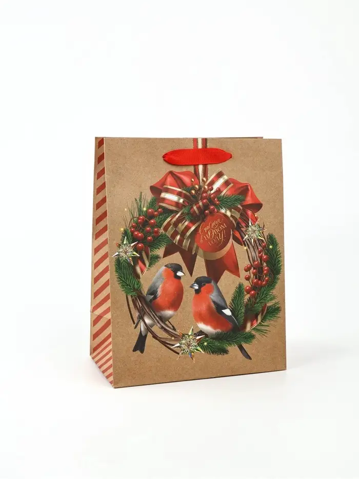 Пакет подарочный крафтовый вертикальный «С Новым годом», MS 18×23×10 см