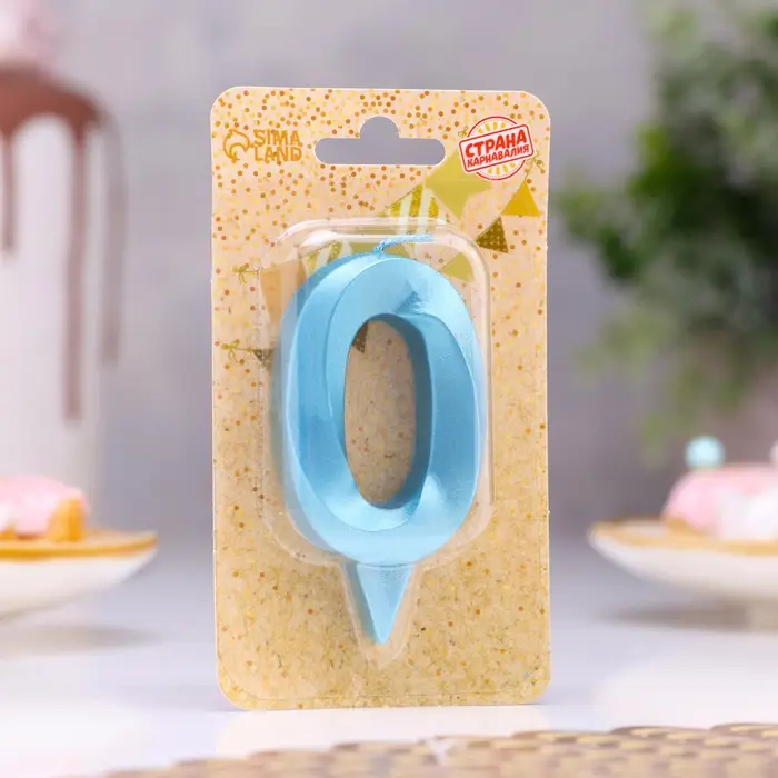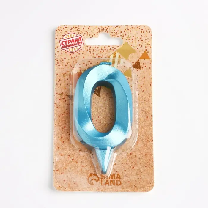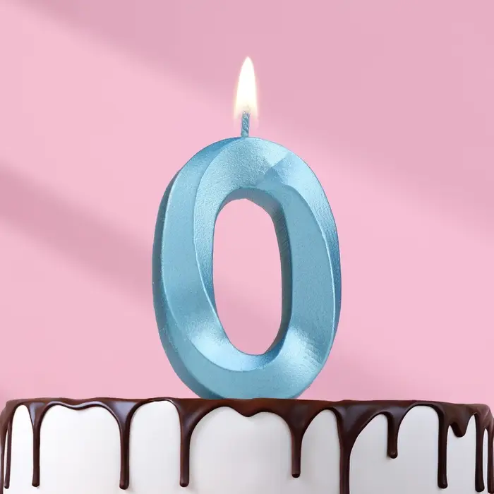 Свеча в торт «Грань», цифра 0, голубой металлик, 6.5 см