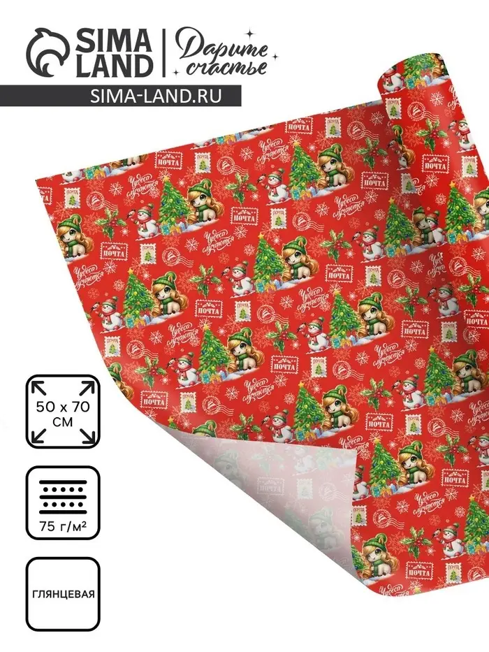 Бумага упаковочная глянцевая «Новогодняя почта», 50×70 см