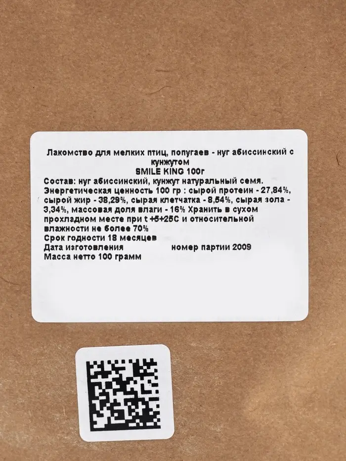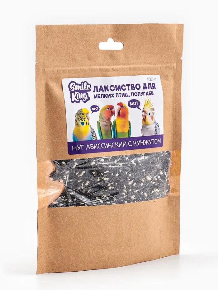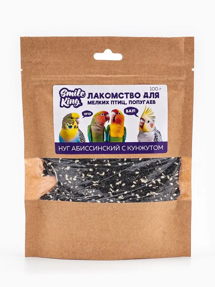 Smile King Лакомство для мелких птиц, попугаев нуг абиссинский с кунжутом 100г.