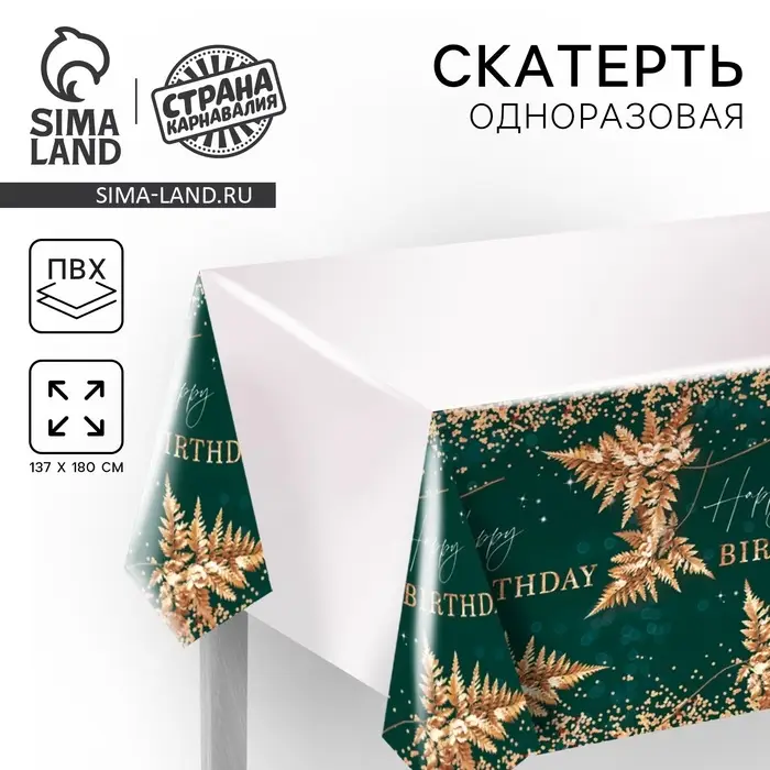 Скатерть одноразовая Happy birthday, полиэтилен, 137×180 см