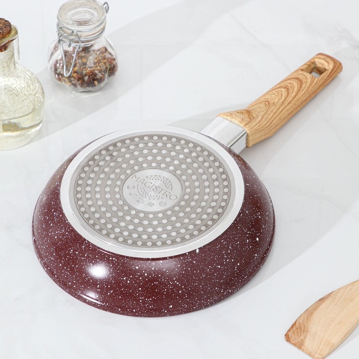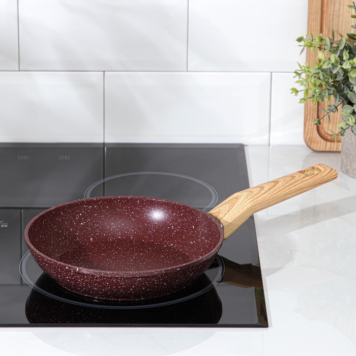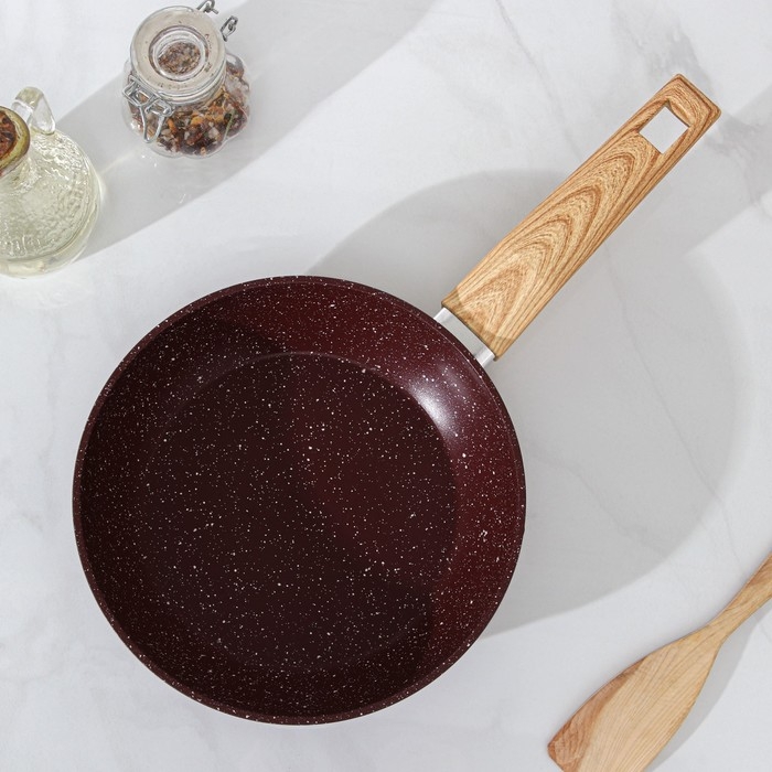 Сковорода Доляна Promo, d=22 см, h= 5 см, пластиковая ручка, антипригарное покрытие, цвет бордовый