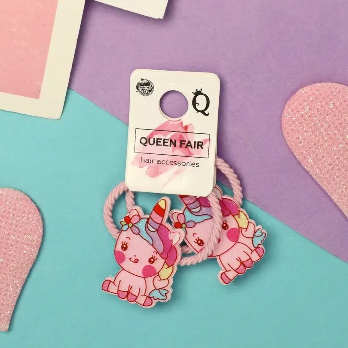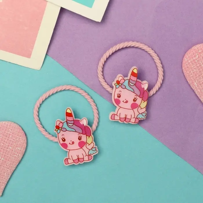 Резинка для волос "Крошка глянец" (набор 2 шт) единорожка весёлый, 3 см, розовый