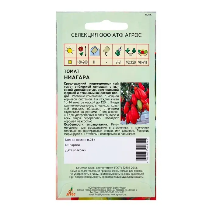 Семена Томат «Ниагара», 0.08 г, «Агрос»