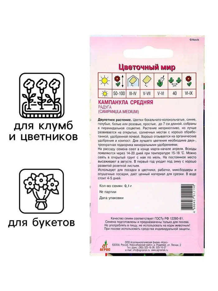 Семена Кампанула «Средняя Радуга», 0.1 г, «Агрос»