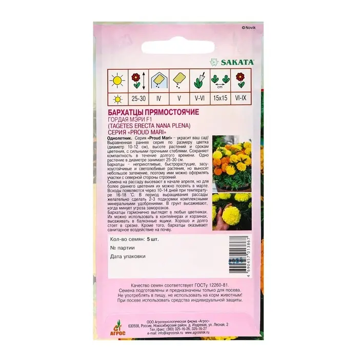 Семена Бархатцы «Гордая Мэри», F1, 5 шт., Sakata, «Агрос»