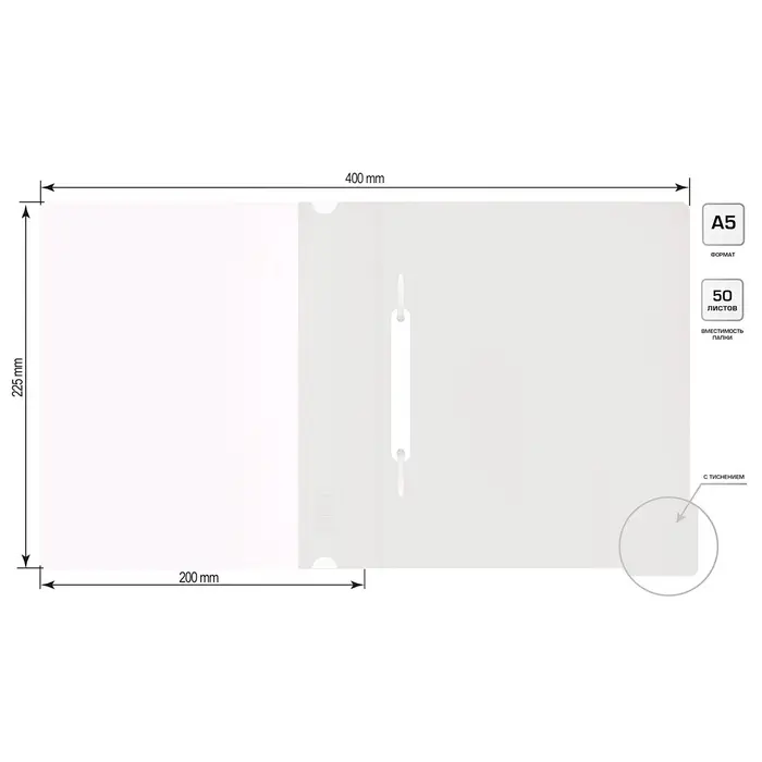 Папка-скоросшиватель Calligrata, А5, 180 мкм, с прозрачным верхом, белая