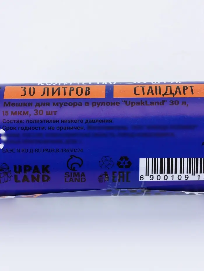 Мешки для мусора 30 л, ПНД, 15 мкм, 30 шт в рул, цвет синий