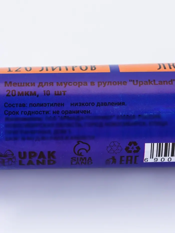 Мешки для мусора 120 л ПНД, 20 мкм, 10 шт в рул, цвет черный