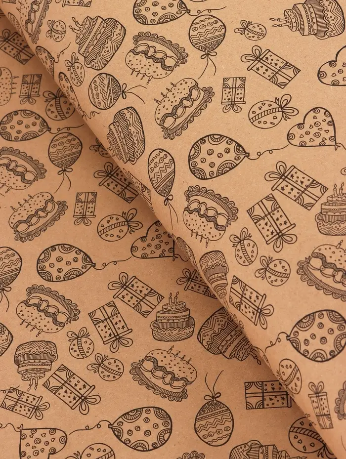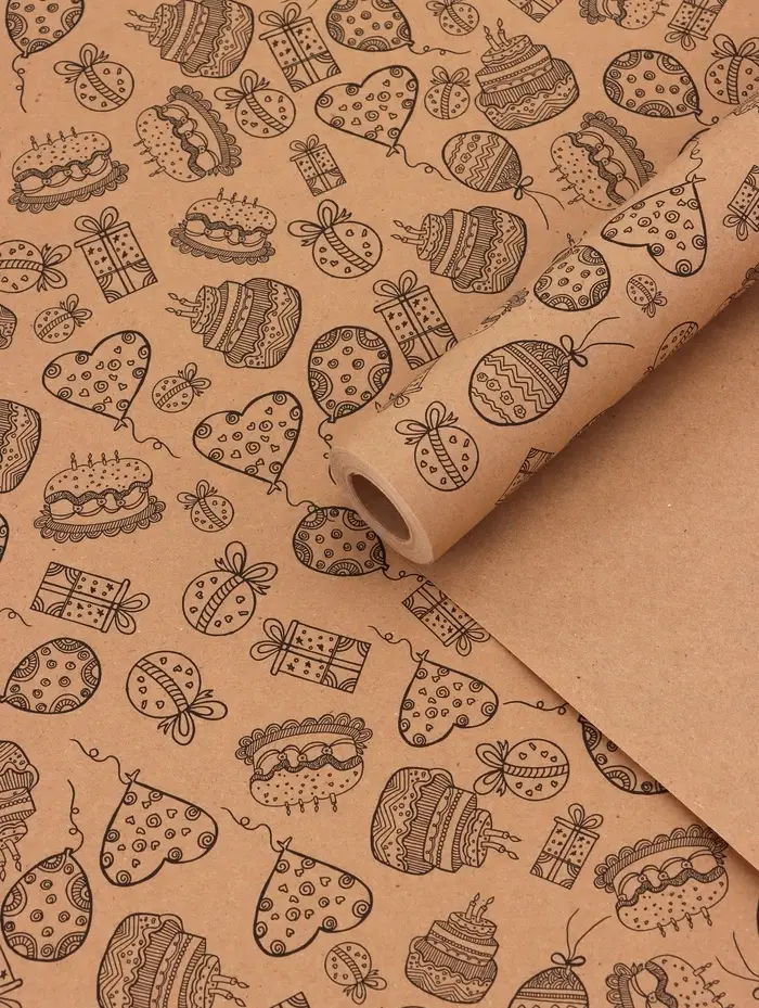 Крафт бумага «Праздник» черный на коричневом фоне, 0.7×10±5% м, 60 г
